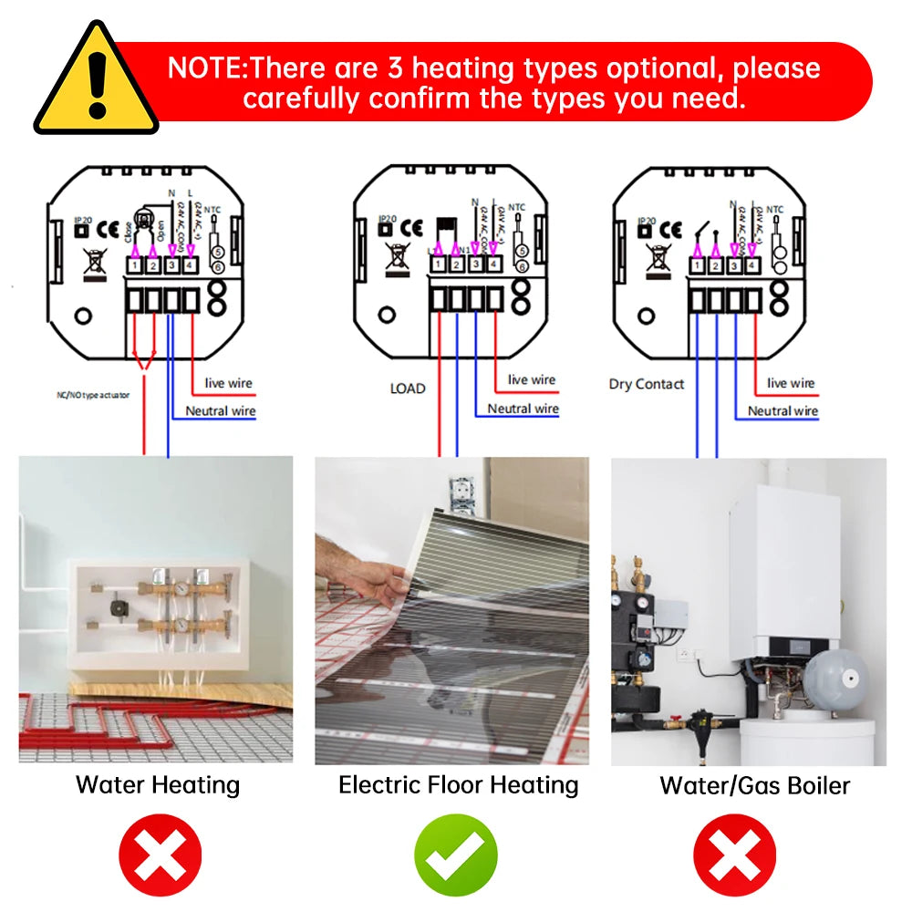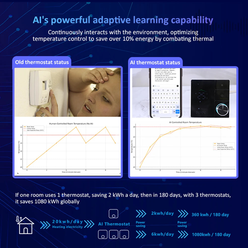 Smart Thermostat for House Electric Floor Heating WiFi AC thermostat with AI Smart Learning APP Control LED Digital Touch Screen